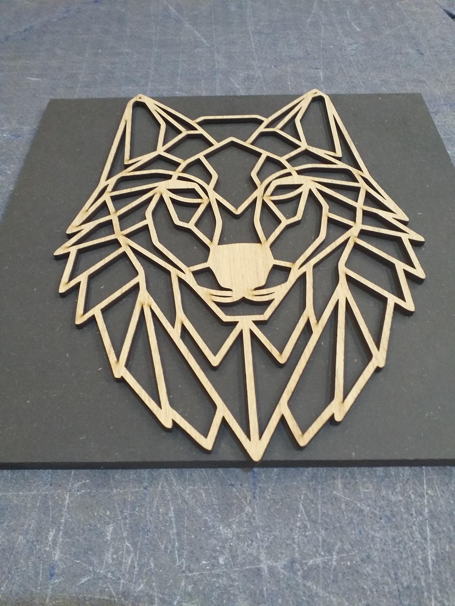 Cabeza de lobo personalizada de madera para decoración de pared